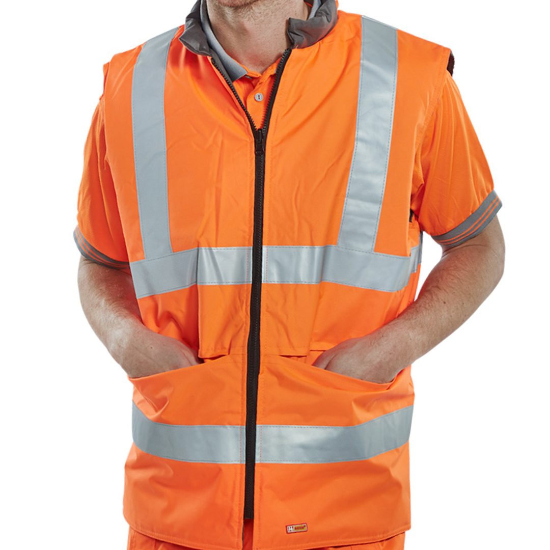 Designed for comfort, safety, and practicality, this orange hi-vis bodywarmer keeps you warm without restricting movement. The bright fluorescent orange fabric and reflective silver strips ensure maximum visibility in low-light conditions, making it ideal for construction, roadwork, and warehouse environments.